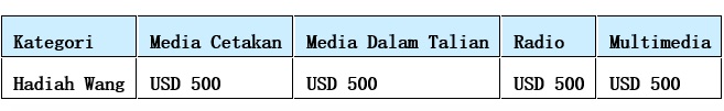 Kategori dan Hadiah Wang untuk setiap kumpulan: