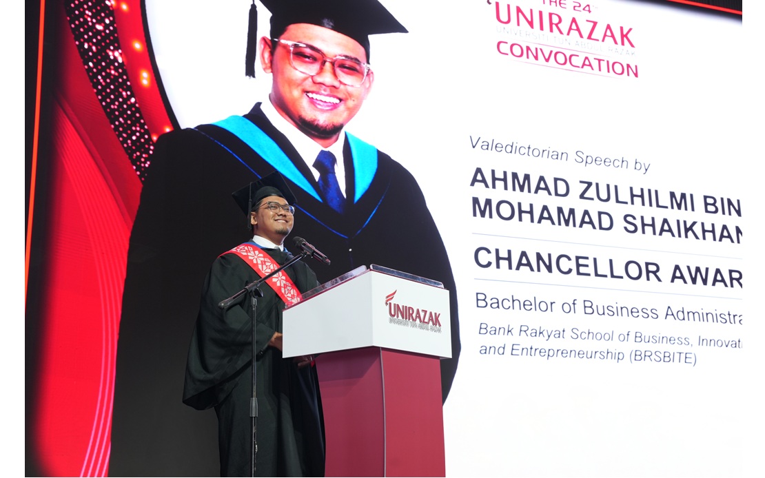 Ahmad Zulhilmi bin Mohamad Shaikhani, Bachelor of Business Administration (Honours) from Bank Rakyat School of Business, Innovation, Technology and Entrepreneurship (BRSBITE), whose presence on campus has been both transformative and enduring. His journey at UNIRAZAK has been defined by leadership exercised with integrity and communication delivered with confidence, inspiring trust across the university community and beyond. From mentoring incoming students to leading student organisations, representing UNIRAZAK on national platforms, and contributing to community-focused initiatives, he consistently demonstrated professionalism, sound judgement, and a strong sense of responsibility. His professional development progressed alongside his studies, reflecting his ability to apply academic learning effectively in real-world settings and exemplifying the holistic excellence UNIRAZAK seeks to cultivate in its graduates.
