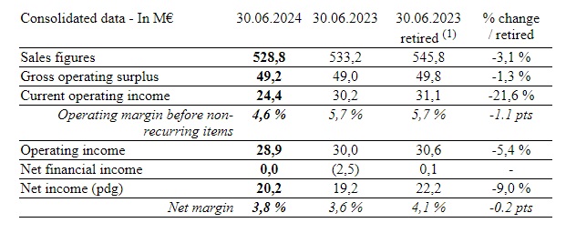 (1) restated in accordance with IAS 21 for Turkish subsidiaries.In the first half of 2024, AKWEL sales totaled €528.8 million, down -3.1% and -2.8% on a like-for-like basis.