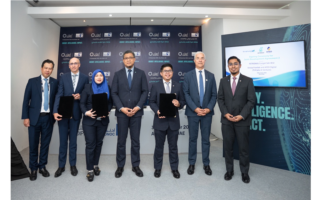 The milestone was commemorated at an Exchange of Documents ceremony held in Abu Dhabi on 4 November. It was attended by PETRONAS Executive Vice President and Chief Executive Officer of Upstream, Mohd Jukris Abdul Wahab; Vice President Development of Upstream PETRONAS, Mohd Nazlee Rasol; Head of TriCipta AI Ventures, Ina Czarina Arief Tham; Chairman of the Board of Beicip-Franlab, Thierry Le Maux; and Chief Executive Officer of AFED Digital Sdn Bhd, Mohammad Khazaidi Kamaruddin.